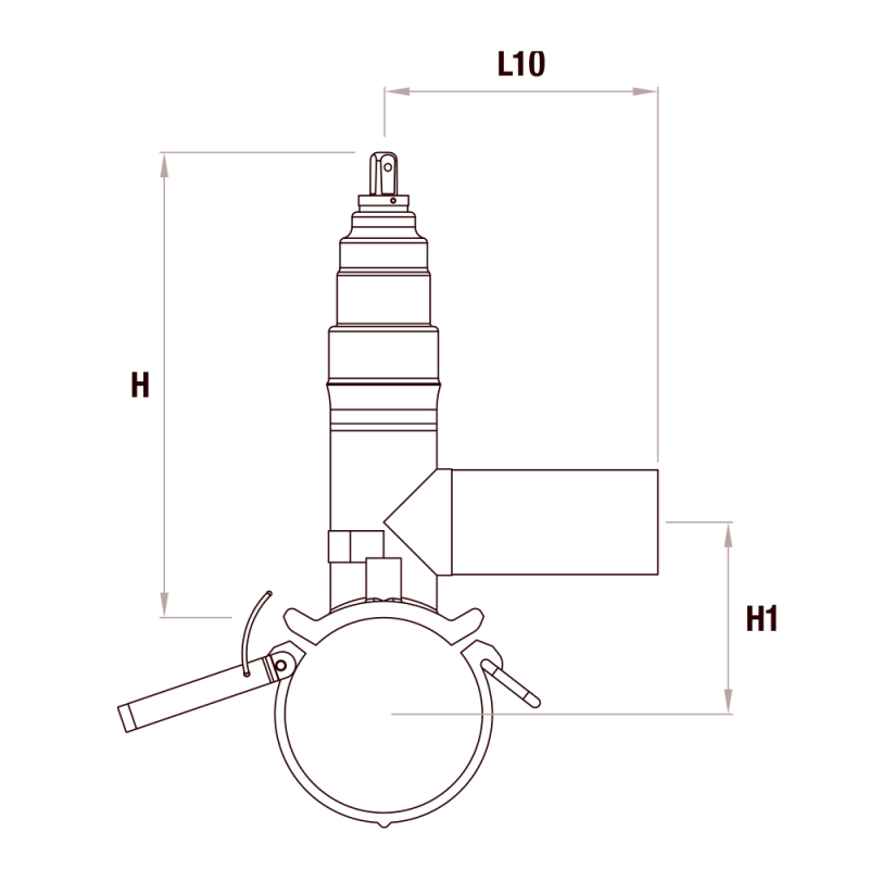 - 14 mm AF-drivaksel til at føre den integrerede fræser gennem hovedrøret samt til betjening af ventilen efter anboring (maks. tilladt moment for anboring er 120 Nm)